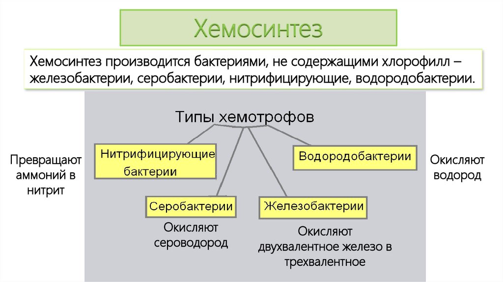 ХемосинтезХемосинтез производится бактериями, не содержащими хлорофилл –
