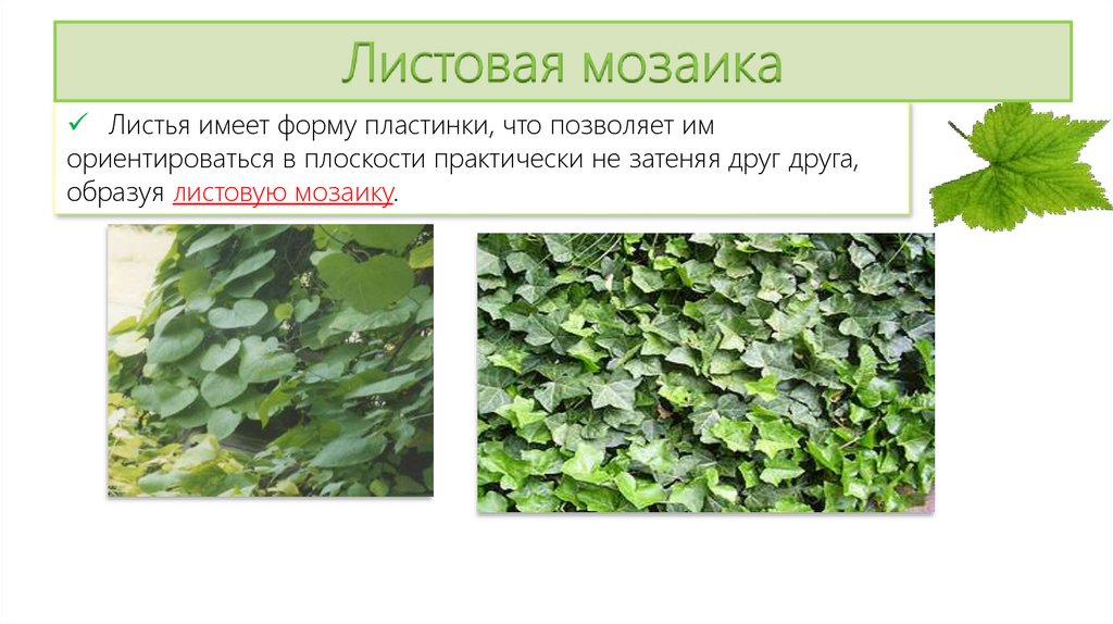 Листовая мозаикаЛистья имеет форму пластинки, что позволяет им