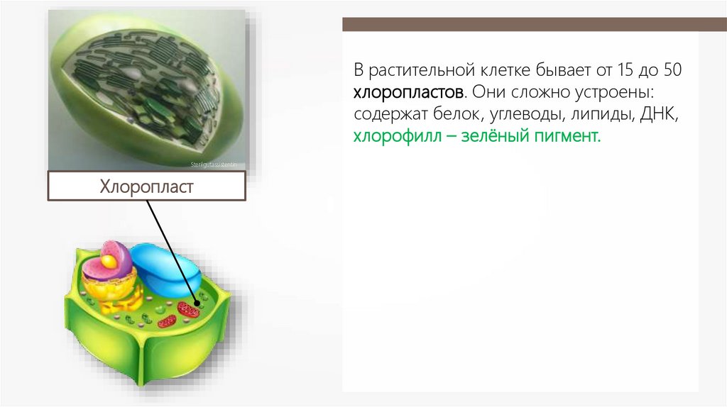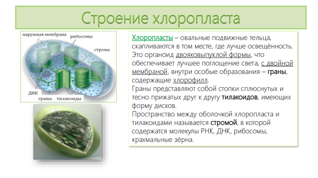 В растительной клетке бывает от 15 до 50хлоропластов. Они сложно устроены: