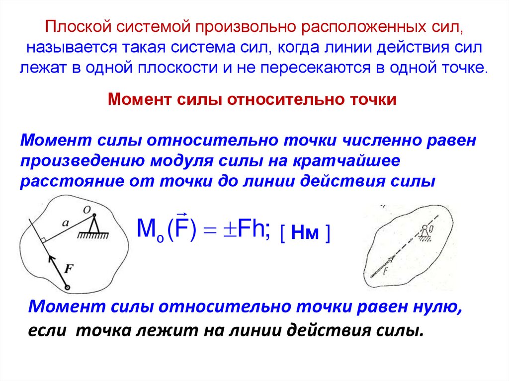 Плоской системой произвольно расположенных сил,называется такая система сил, когда линии действия сил