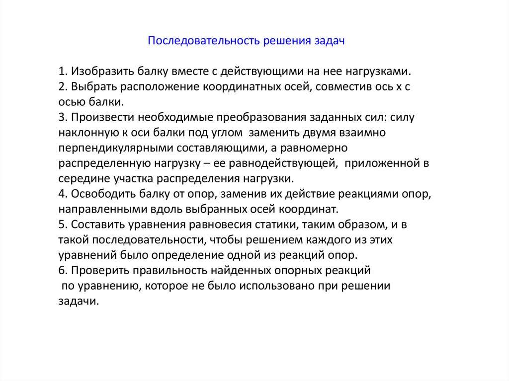 Последовательность решения задач1. Изобразить балку вместе с действующими на нее нагрузками.