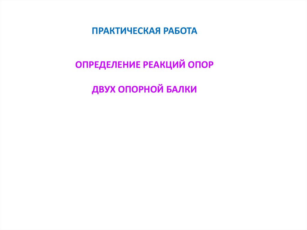 ПРАКТИЧЕСКАЯ РАБОТАОПРЕДЕЛЕНИЕ РЕАКЦИЙ ОПОР БАЛКИ