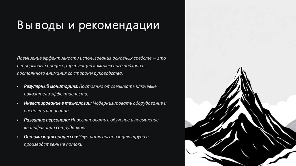 В ы воды и рекомендацииПовышение эффективности использования основных средств — это