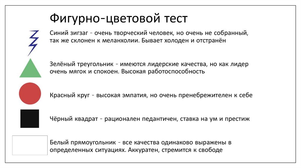 Синий зигзаг - очень творческий человек, но очень не собранный,так же склонен к меланхолии. Бывает холоден и отстранён