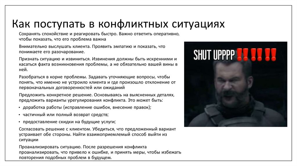 Внимательно выслушать клиента. Проявить эмпатию и показать, что