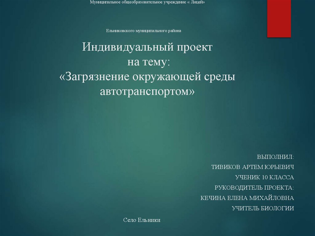 1. Муниципальное общеобразовательное учреждение « Лицей» Ельниковского муниципального района Индивидуальный проект на тему: