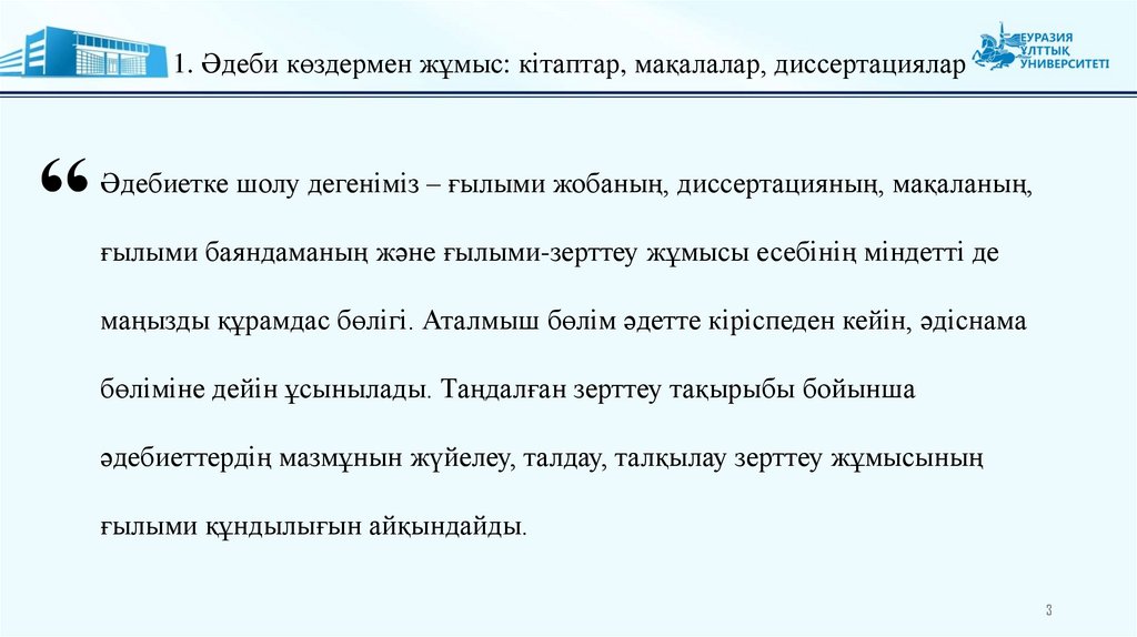 1. Әдеби көздермен жұмыс: кітаптар, мақалалар, диссертациялар