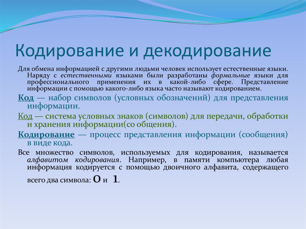 Кодирование — процесс представления информации (сообщения)