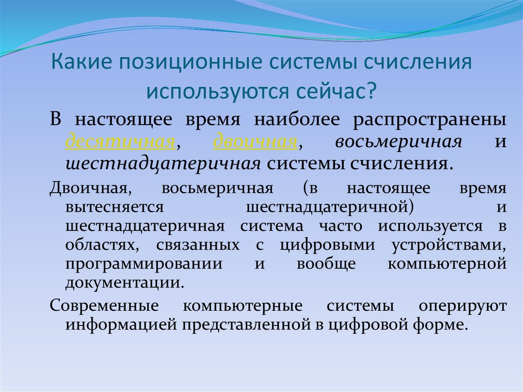 Какие два вида систем счисления вы знаете?