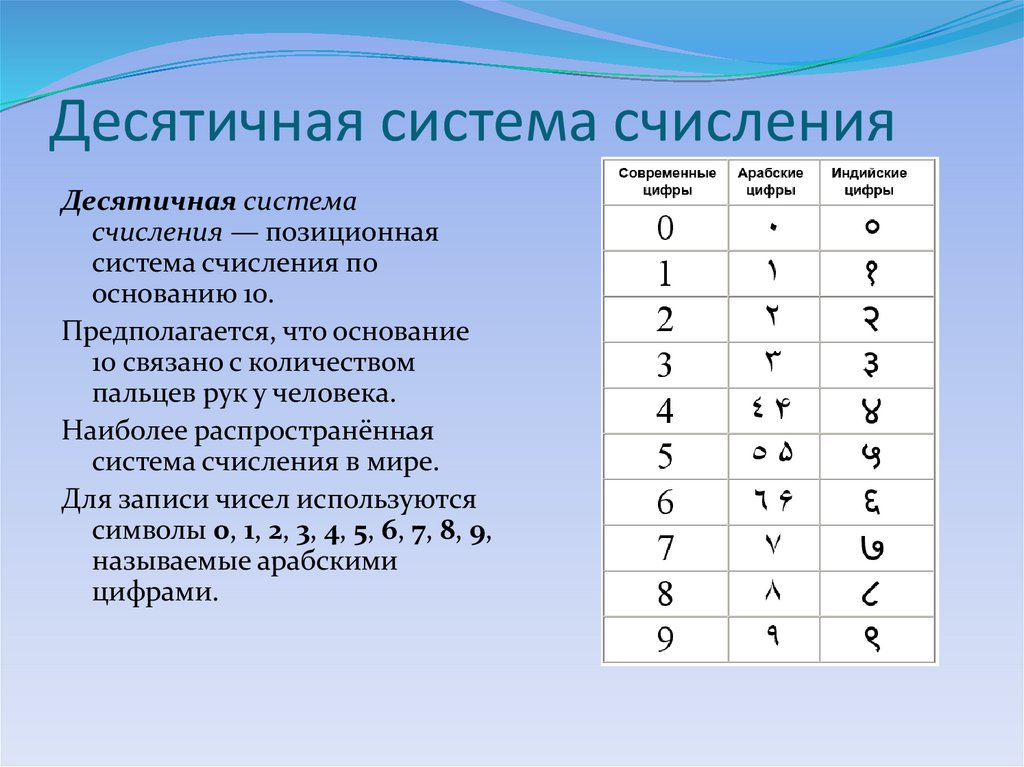 десятичной системе счисления?
