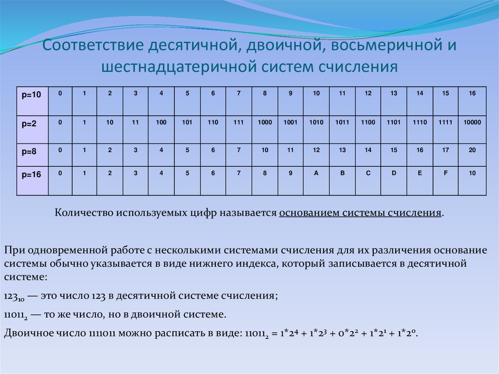 Что такое основание системы счисления? Что такое