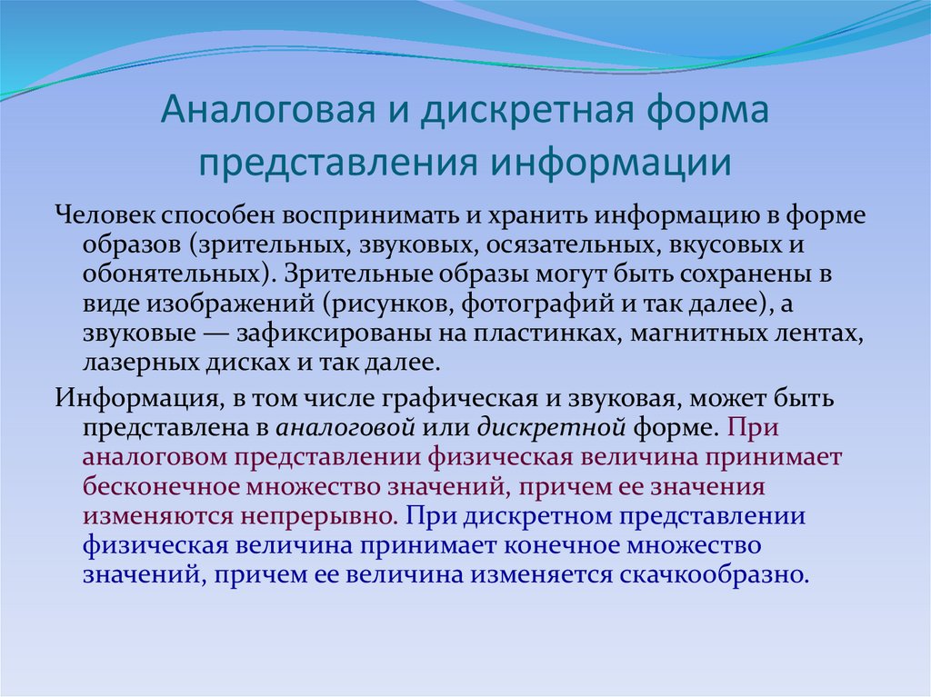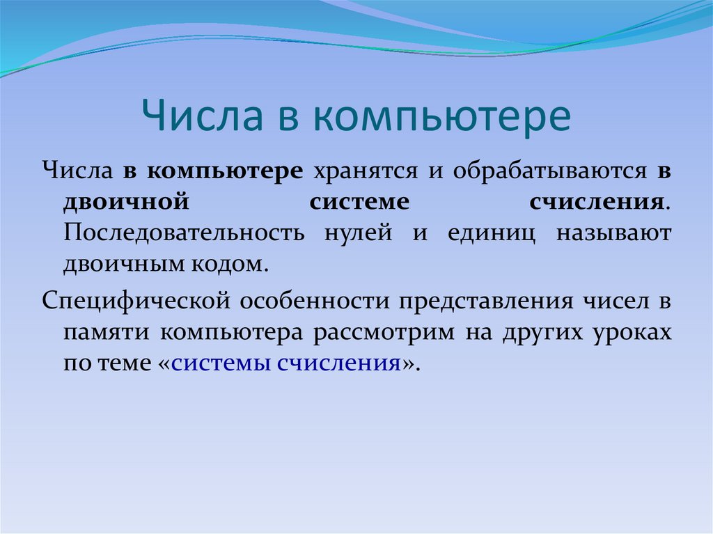 Покажем это на примере представления чисел — количественной