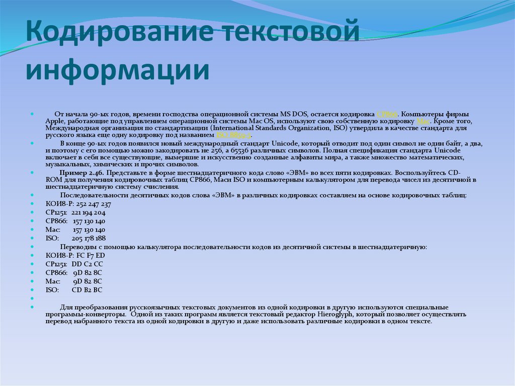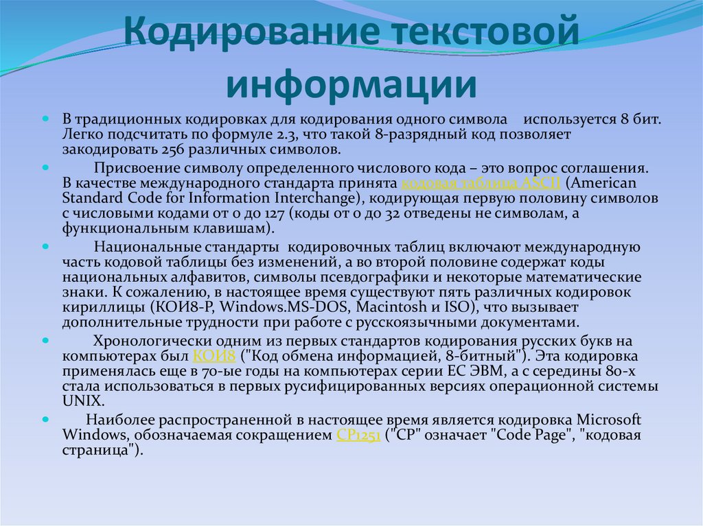 Кодирование текстовой информации
