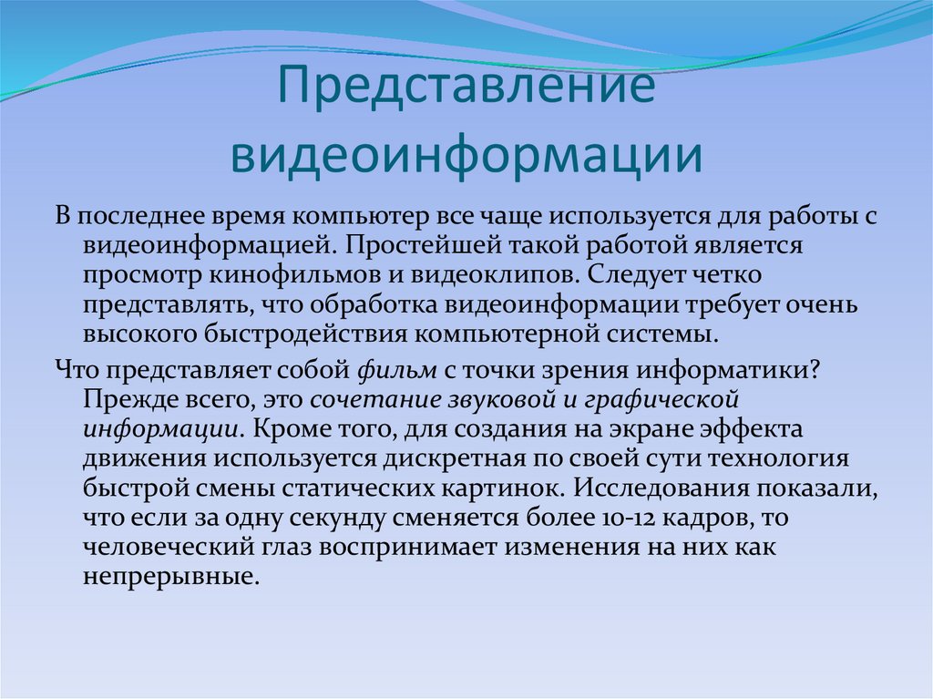 54. Представление видеоинформации
