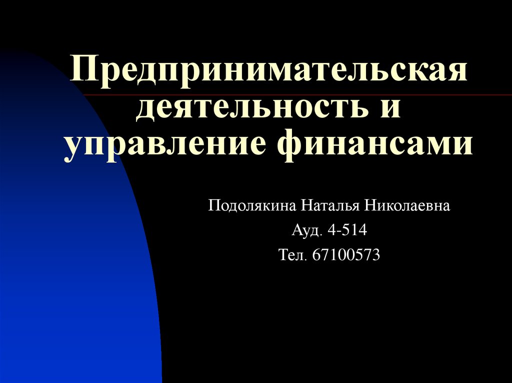 Предпринимательская деятельность и управление финансами
