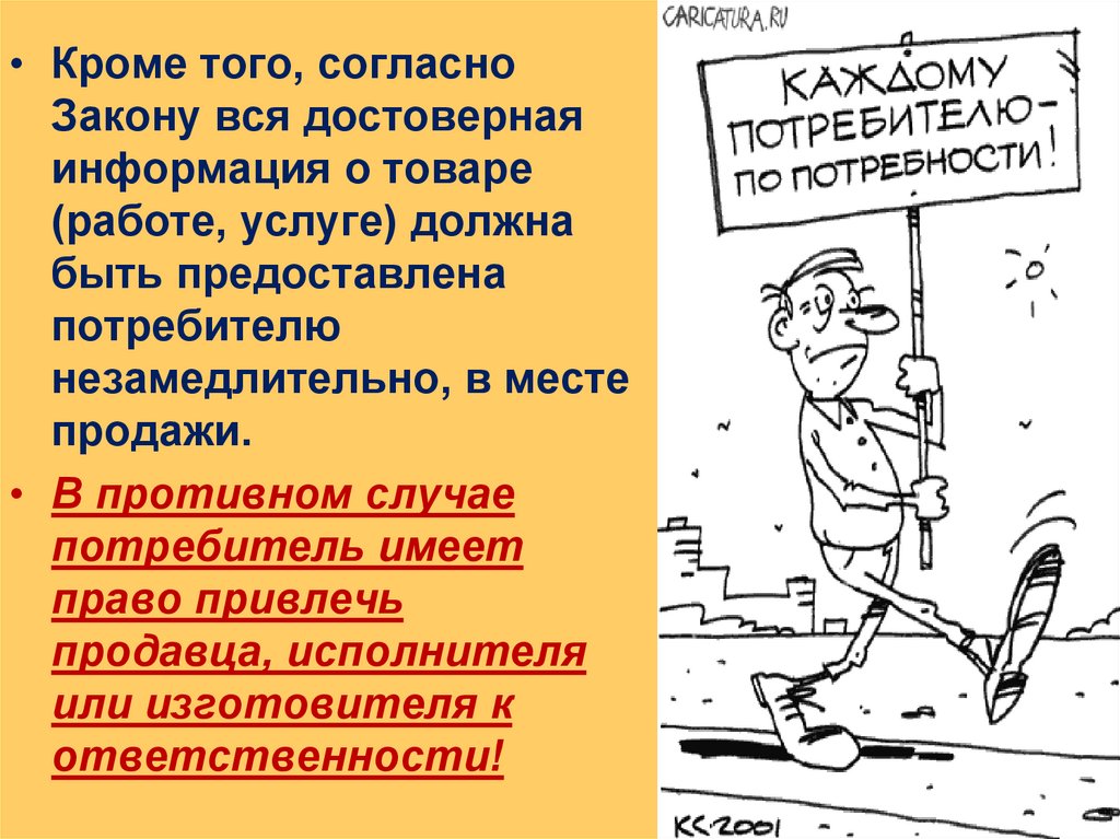 Потребитель должен бытьпредупрежден об этих
