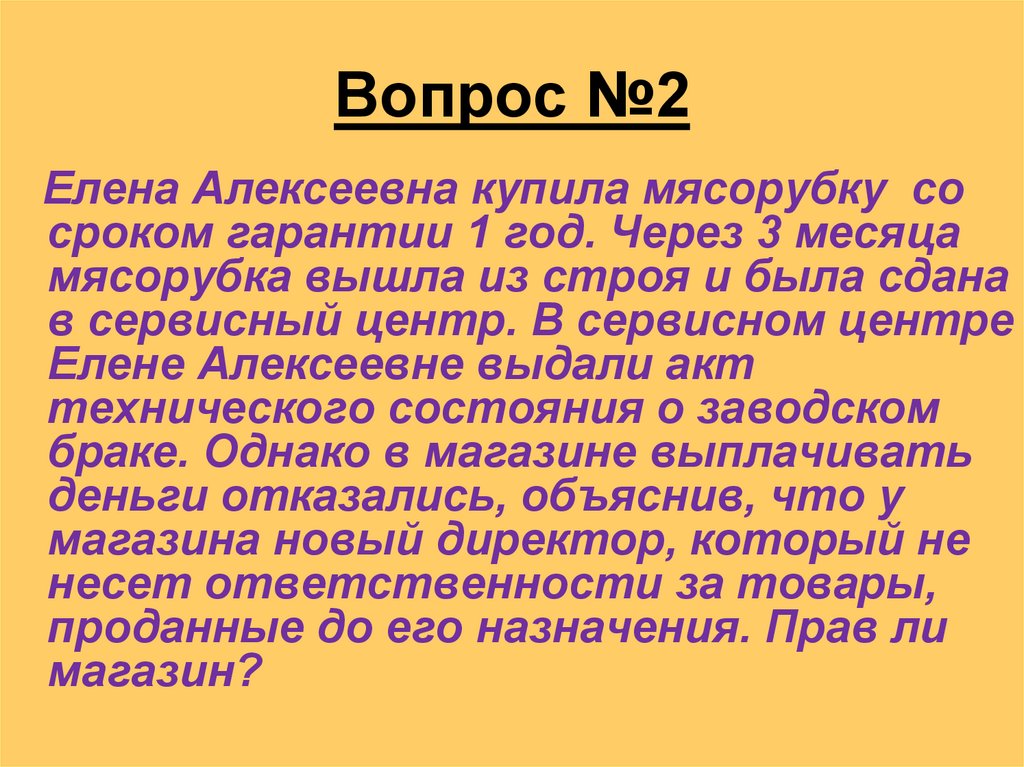 Елена Алексеевна купила мясорубку сосроком гарантии 1 год. Через 3 месяца