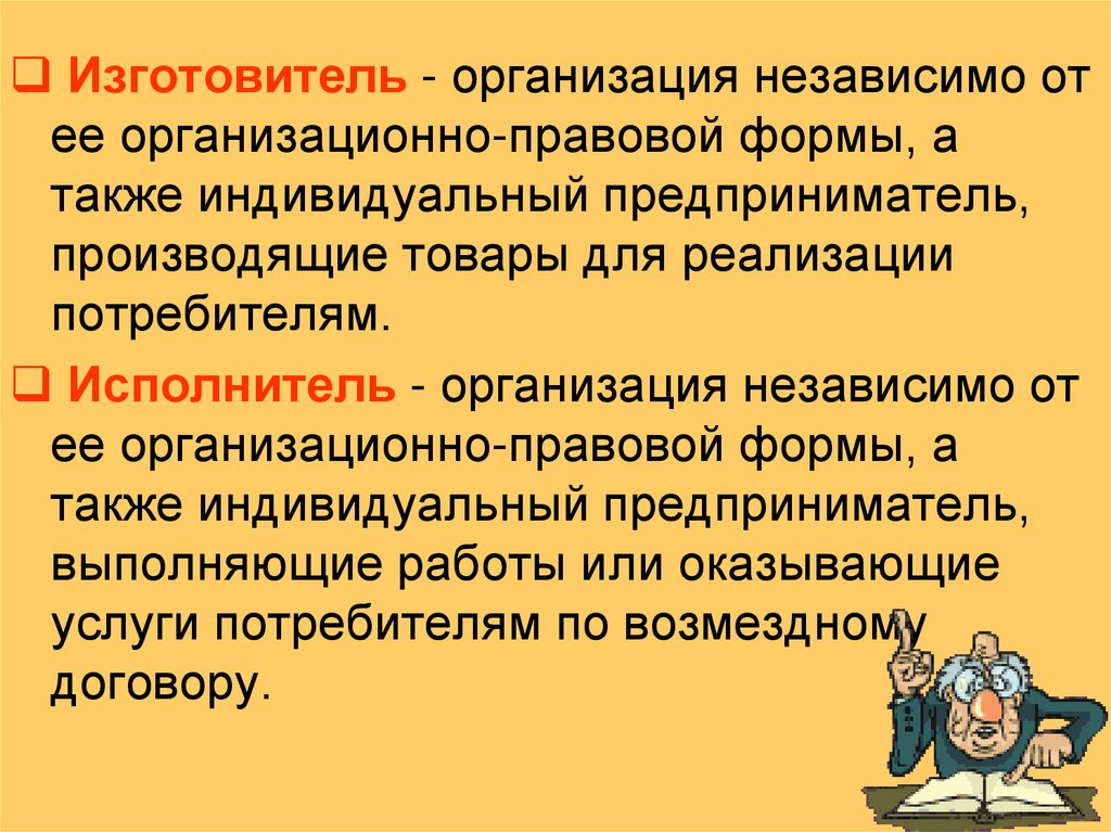 Изготовитель - организация независимо отее организационно-правовой формы, а