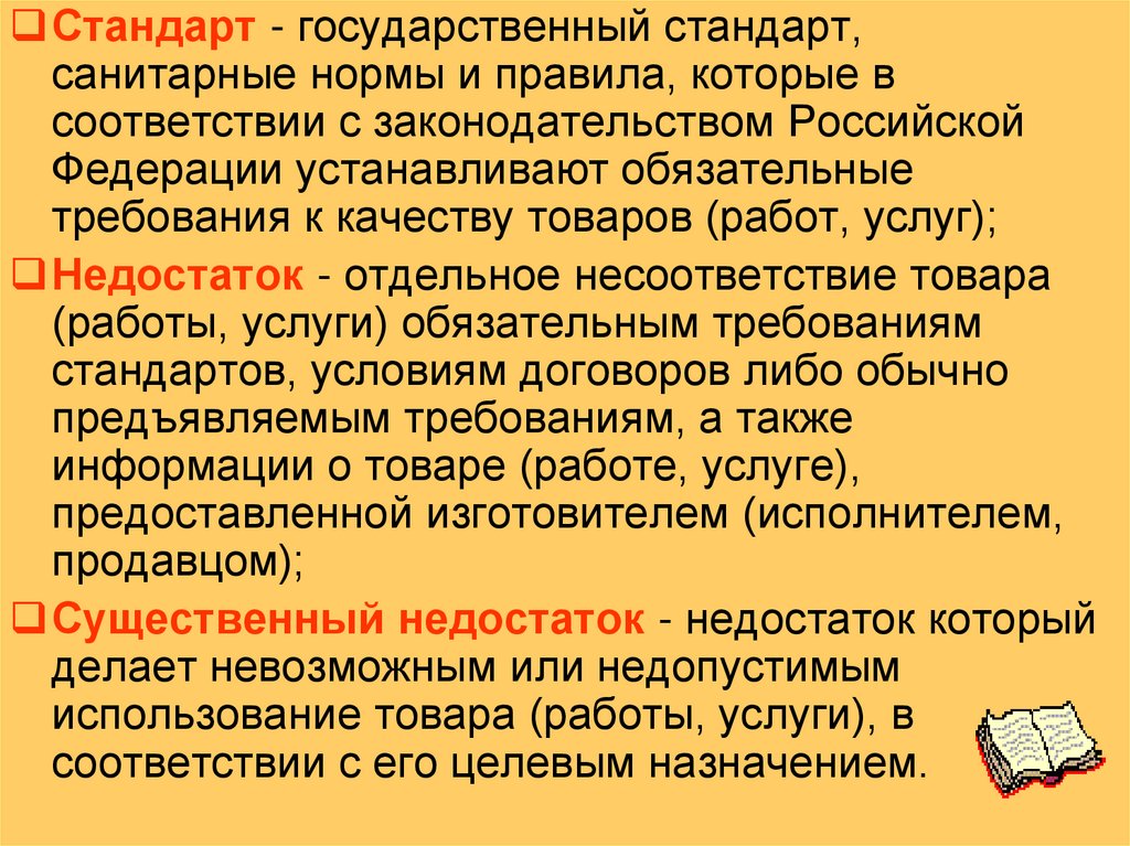 Стандарт - государственный стандарт,санитарные нормы и правила, которые в