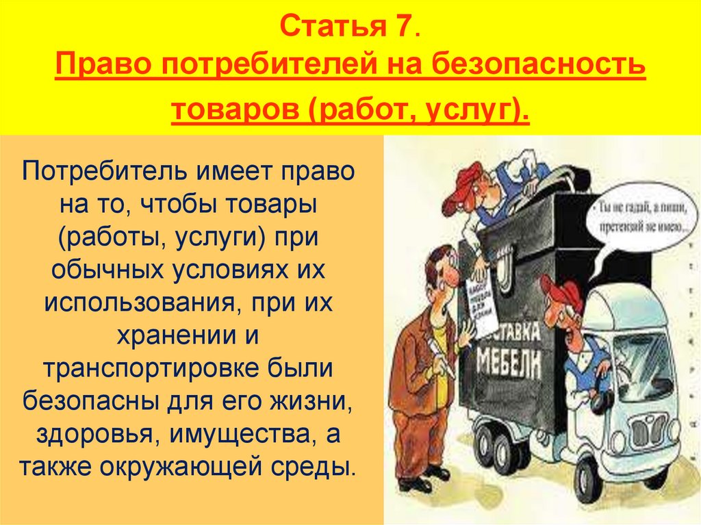 10. Статья 7. Право потребителей на безопасность товаров (работ, услуг).