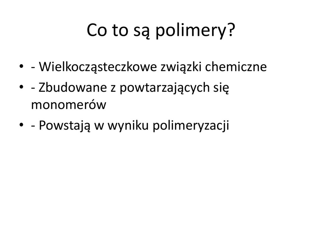 Co to są polimery?• - Wielkocząsteczkowe związki chemiczne
