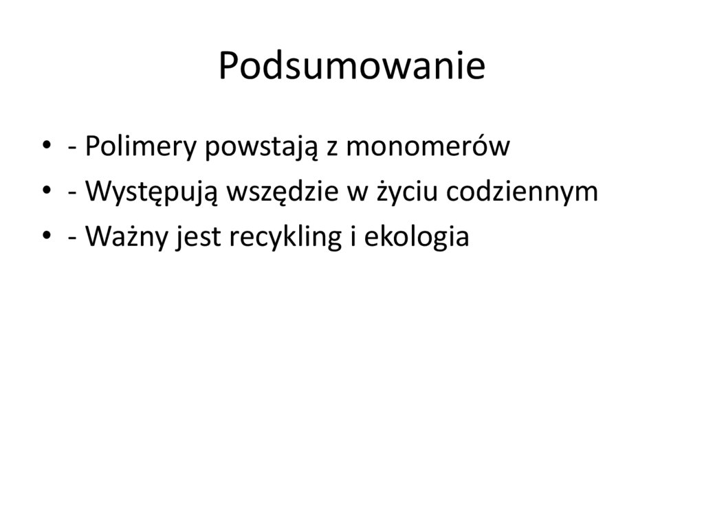 Podsumowanie• - Polimery powstają z monomerów