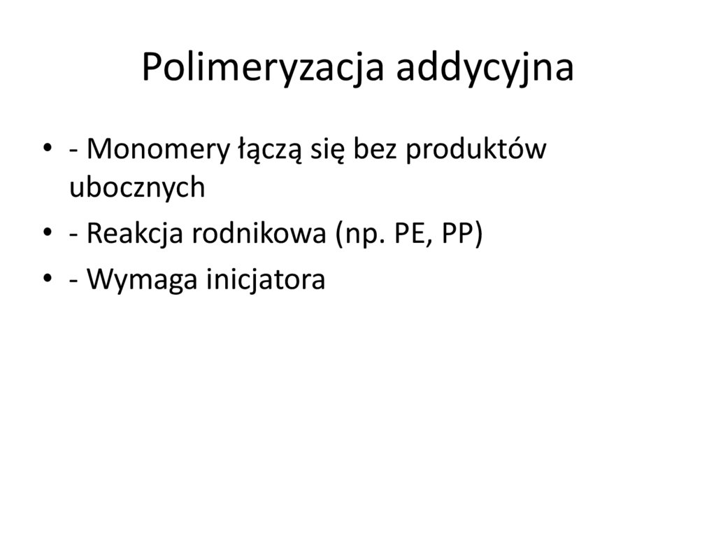 Polimeryzacja addycyjna• - Monomery łączą się bez produktów