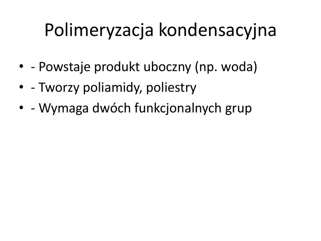 Polimeryzacja kondensacyjna• - Powstaje produkt uboczny (np. woda)