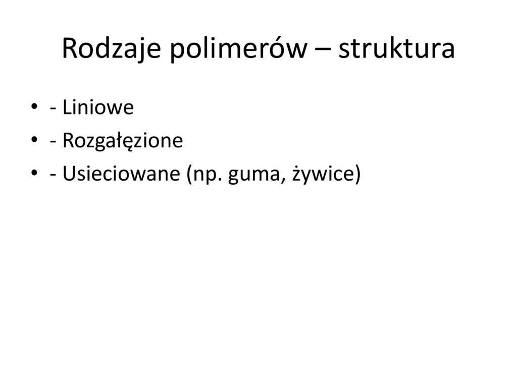Rodzaje polimerów – struktura• - Liniowe