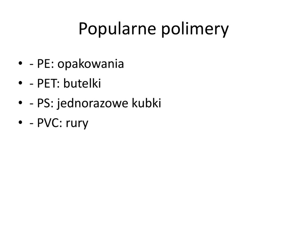 Popularne polimery• - PE: opakowania