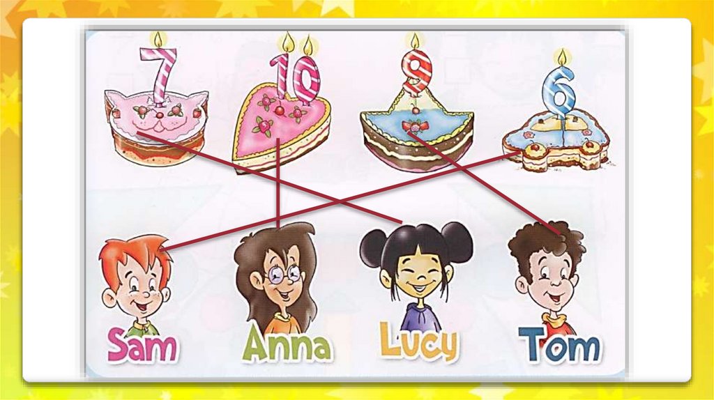 1Посмотри на картинку и закончи фразы, сосчитав свечки на