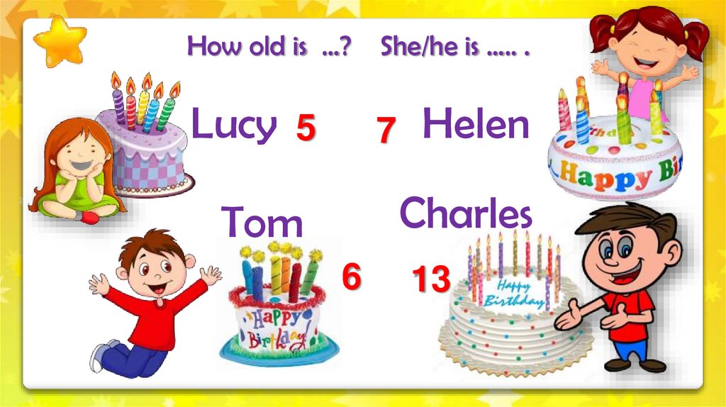 их вопросы, ка показано в образце: - How old are you?- I’m six. - You’re …!