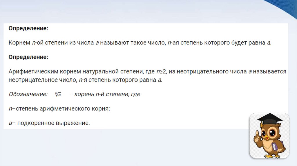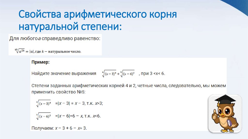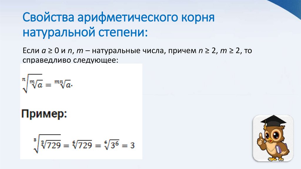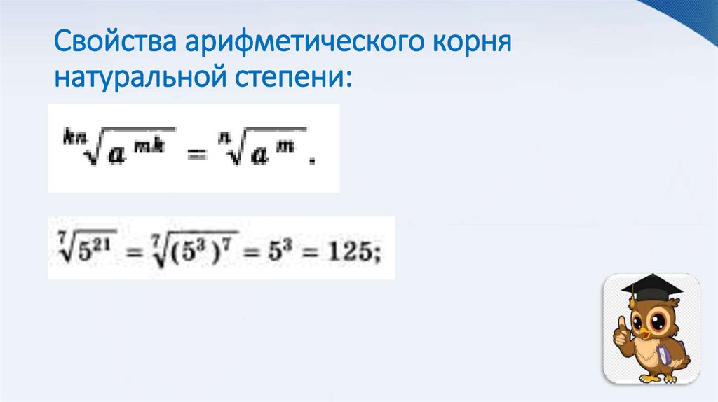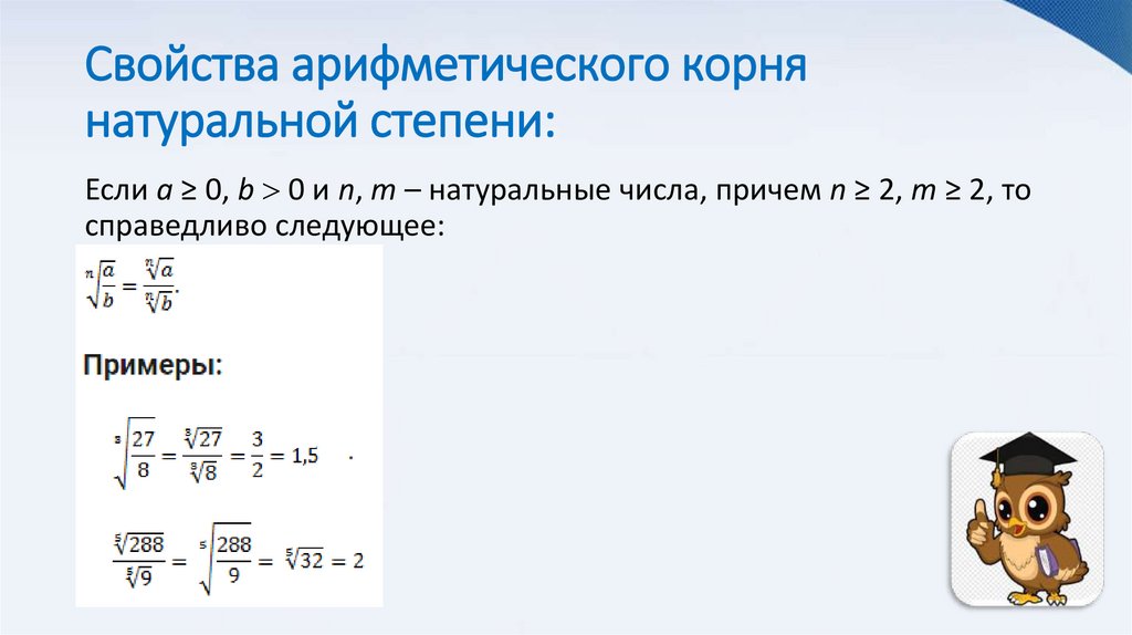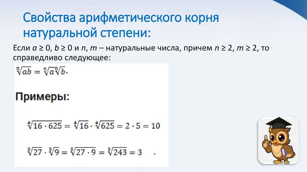 1. Арифметический корень натуральной степени. Свойства арифметического корня натуральной степени