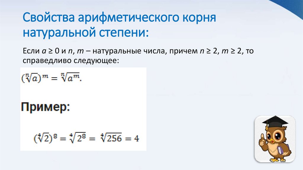 Если а ≥ 0, b 0 и n, m – натуральные числа, причем n ≥ 2, m ≥ 2, тосправедливо следующее: