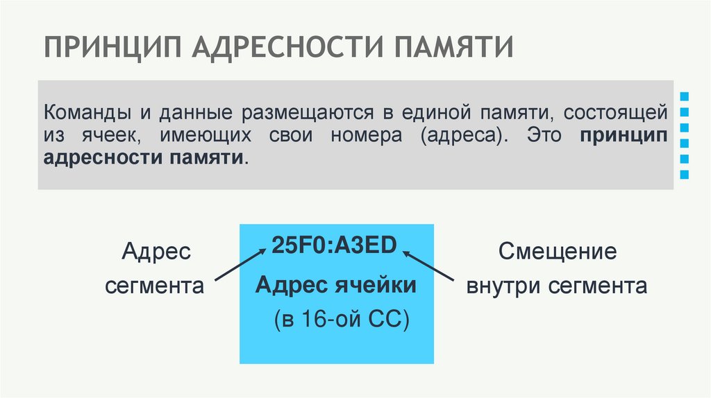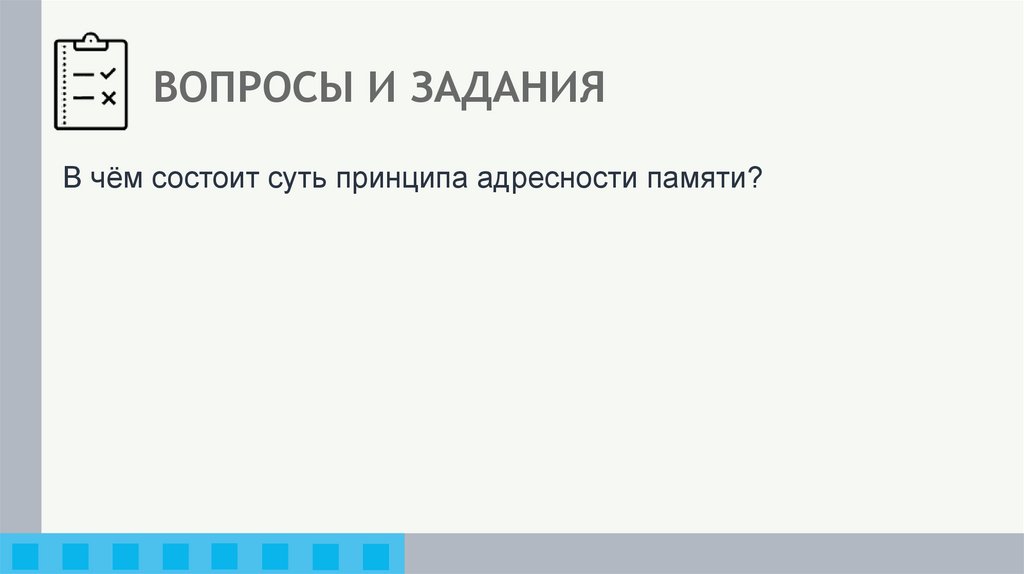 В чём состоит суть принципа адресности памяти?28. ВОПРОСЫ И ЗАДАНИЯ
