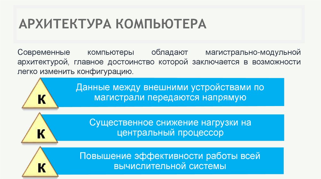 внутри компьютера. Второе преимущество современной архитектуры — возможность легко изменить