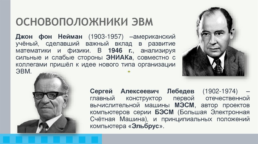 учёными XX века — Джоном фон Нейманом и Сергеем Алексеевичем Лебедевым.