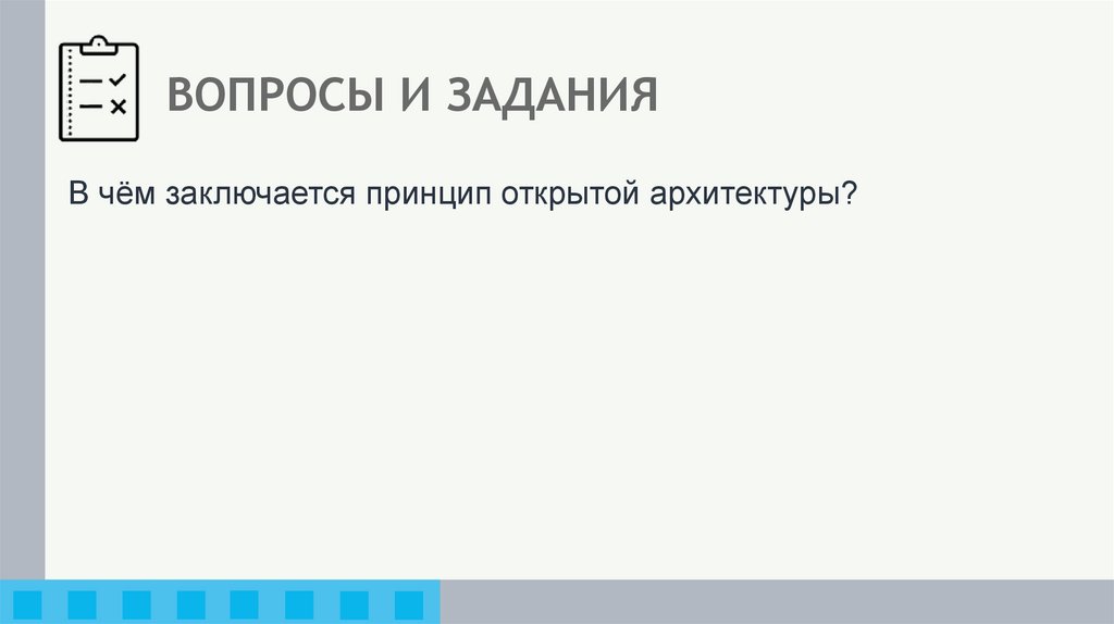 В чём заключается принцип открытой архитектуры?35. ВОПРОСЫ И ЗАДАНИЯ