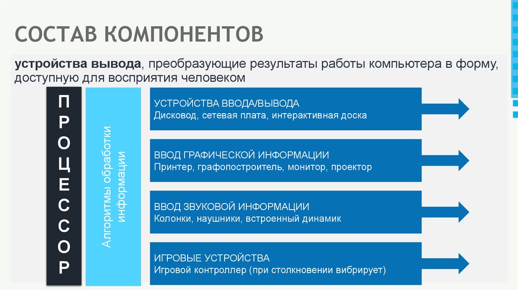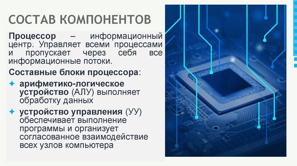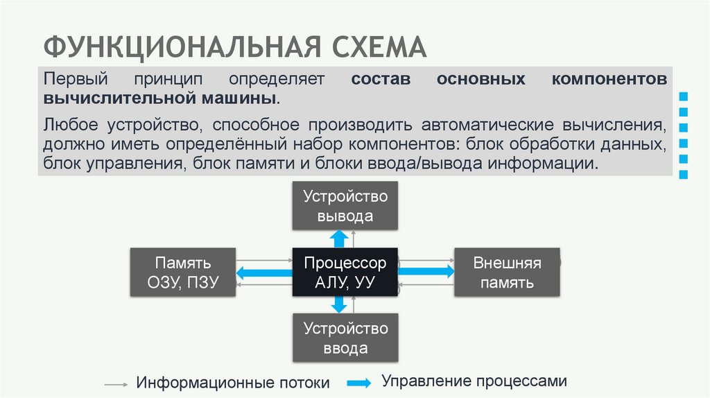 Первый принцип определяет состав основных компонентоввычислительной машины.