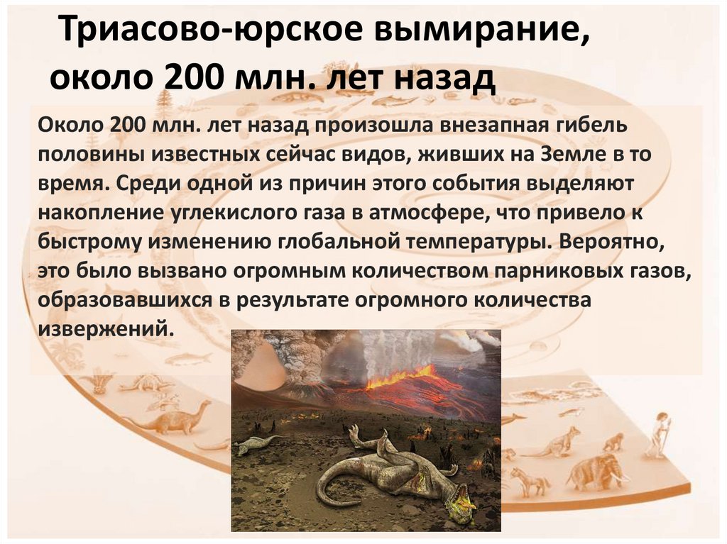 13. Триасово-юрское вымирание, около 200 млн. лет назад