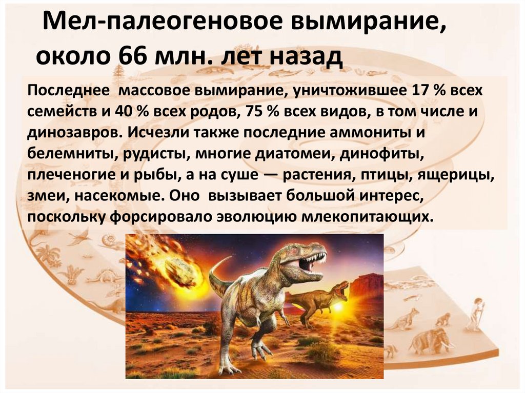 динозавров. Исчезли также последние аммониты и