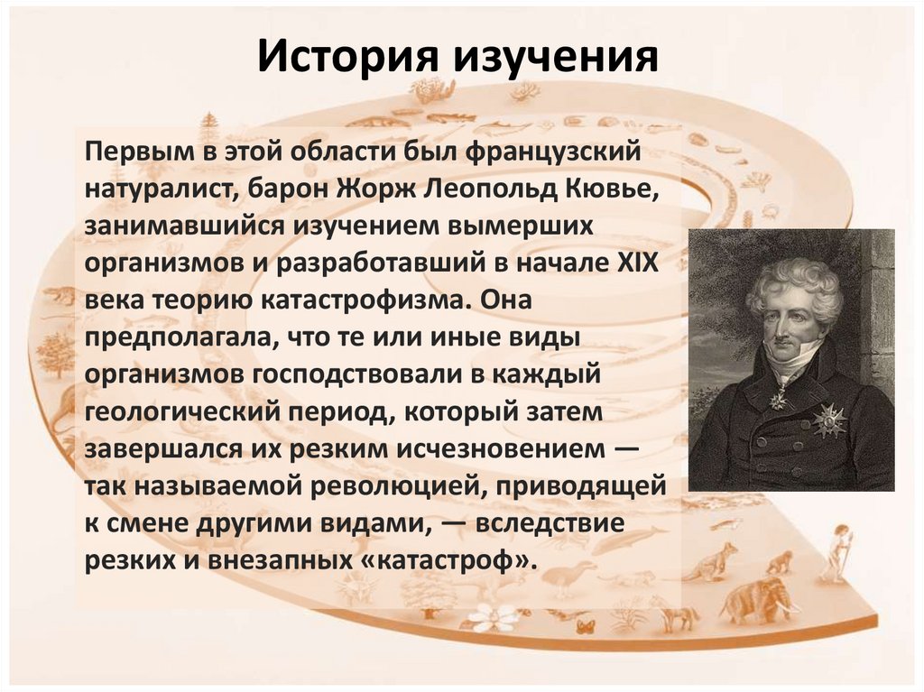Первым в этой области был французскийнатуралист, барон Жорж Леопольд Кювье,