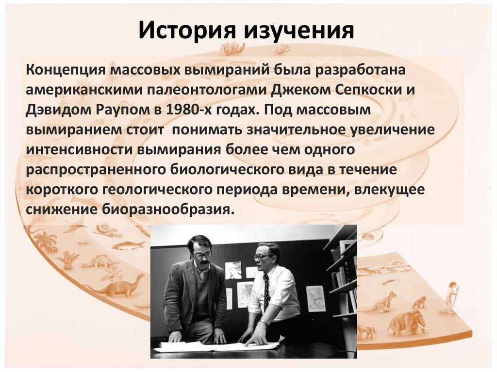 Концепция массовых вымираний была разработанаамериканскими палеонтологами Джеком Сепкоски и