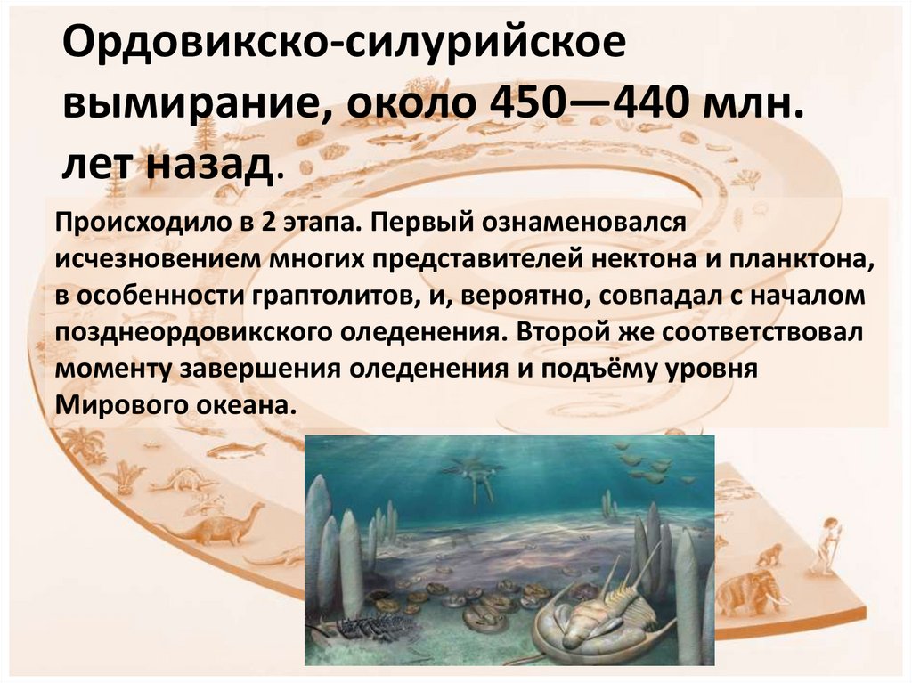 10. Ордовикско-силурийское вымирание, около 450—440 млн. лет назад.
