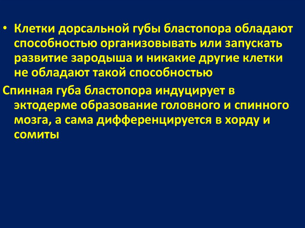 • Клетки дорсальной губы бластопора обладаютспособностью организовывать или запускать