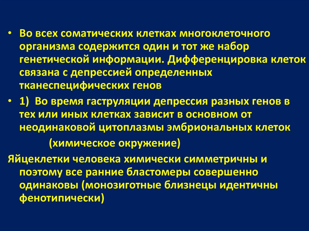 • Во всех соматических клетках многоклеточногоорганизма содержится один и тот же набор