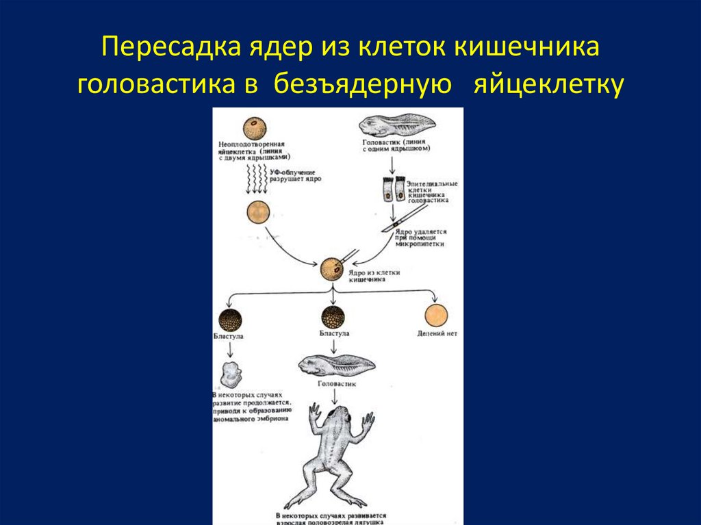 4. Пересадка ядер из клеток кишечника головастика в безъядерную яйцеклетку