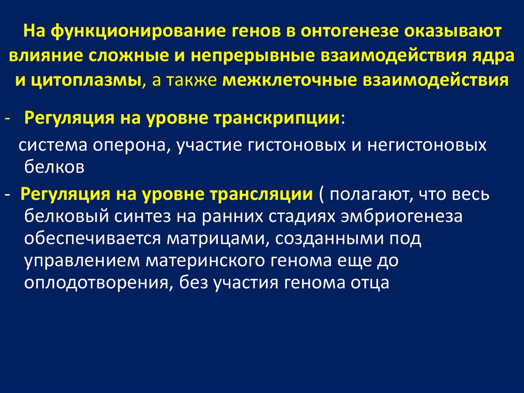 5. На функционирование генов в онтогенезе оказывают влияние сложные и непрерывные взаимодействия ядра и цитоплазмы, а также