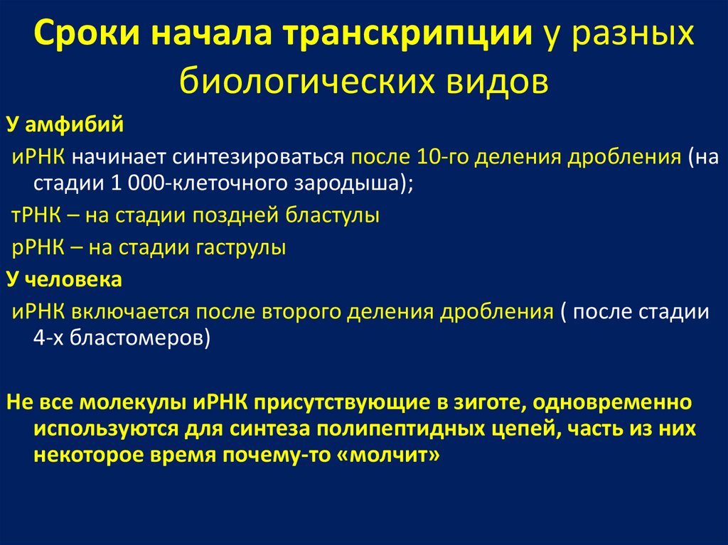 Не все молекулы иРНК присутствующие в зиготе, одновременно
