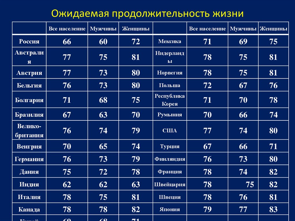 В среднем россияне должны жить 78 лет. Потерянные годы по методике
